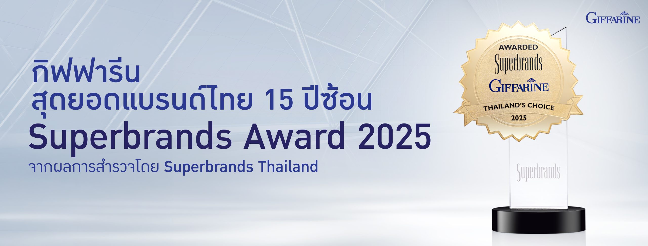 ที่สุดของความภาคภูมิใจของกิฟฟารีน “Thailand’s Most Admired Company 2025-2026” บริษัทที่มีความน่าเชื่อถือสูงสุด ในกลุ่มธุรกิจขายตรง ต่อเนื่อง 4 ปีซ้อน ตอกย้ำความสำเร็จตลอด 30 ปี องค์กรที่สร้างศรัทธา ด้วยความดี ความยั่งยืน และธรรมาภิบาล