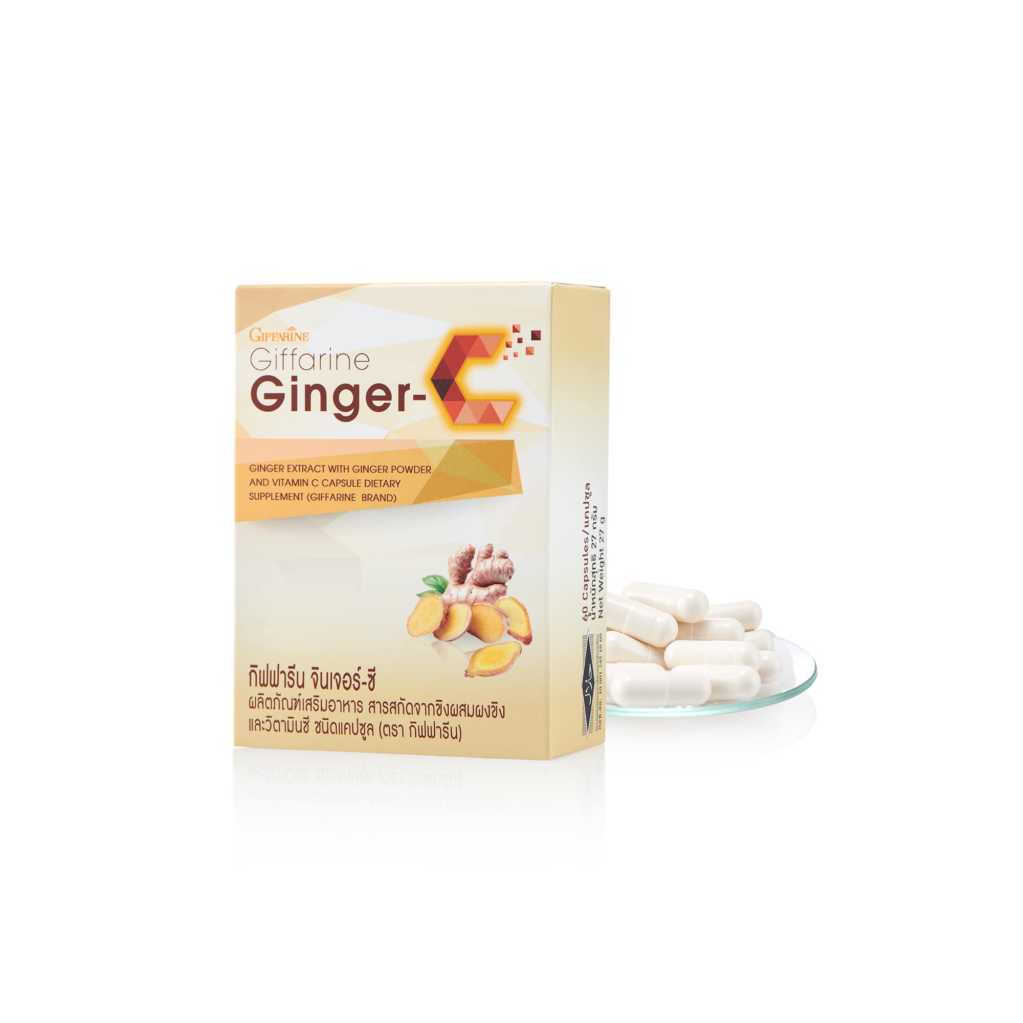 ผลิตภัณฑ์เสริมอาหารสารสกัดขิงผสมผงขิง และวิตามินซี ชนิดแคปซูล (ตรา กิฟฟารีน)